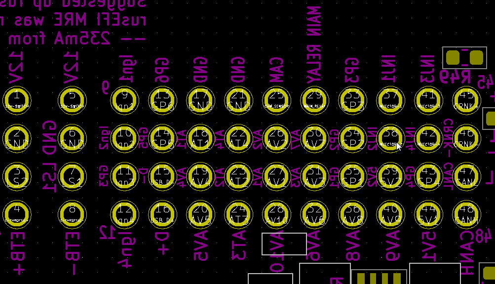 | mr | Main relay | Dedicated main relay output. Low side turned on with power, 800mA maximum. | Main relay |